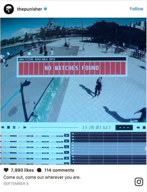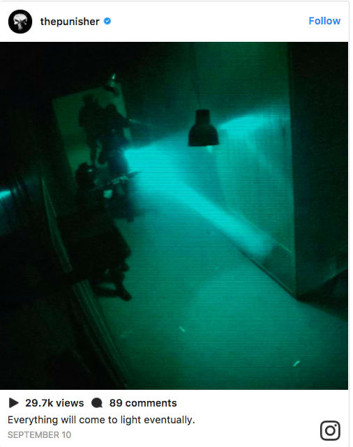 The last week has seen the official Instagram account release a series of strange images and videos. They seem to be hinting at a dangerous game of cat and mouse, one in which the Punisher is both the hunter... and the hunted.